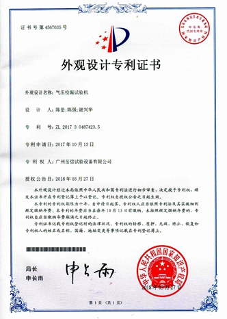 壓力浸水試驗(yàn)機(jī)-外觀專利證書【岳信公司】